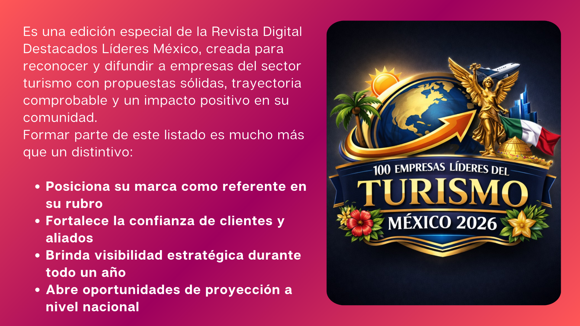 Forme parte de las 100 Empresas y Negocios Líderes del Turismo en México 2026