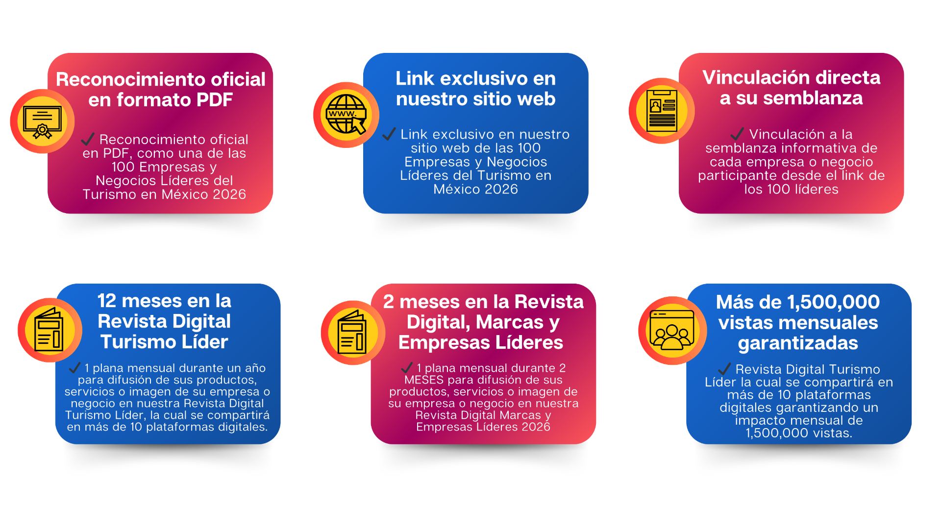 Impulse la visibilidad, credibilidad y posicionamiento de su empresa turística con una inversión accesible y estratégica. Este reconocimiento editorial está diseñado para empresas mexicanas que contribuyen activamente al desarrollo del turismo en el país.