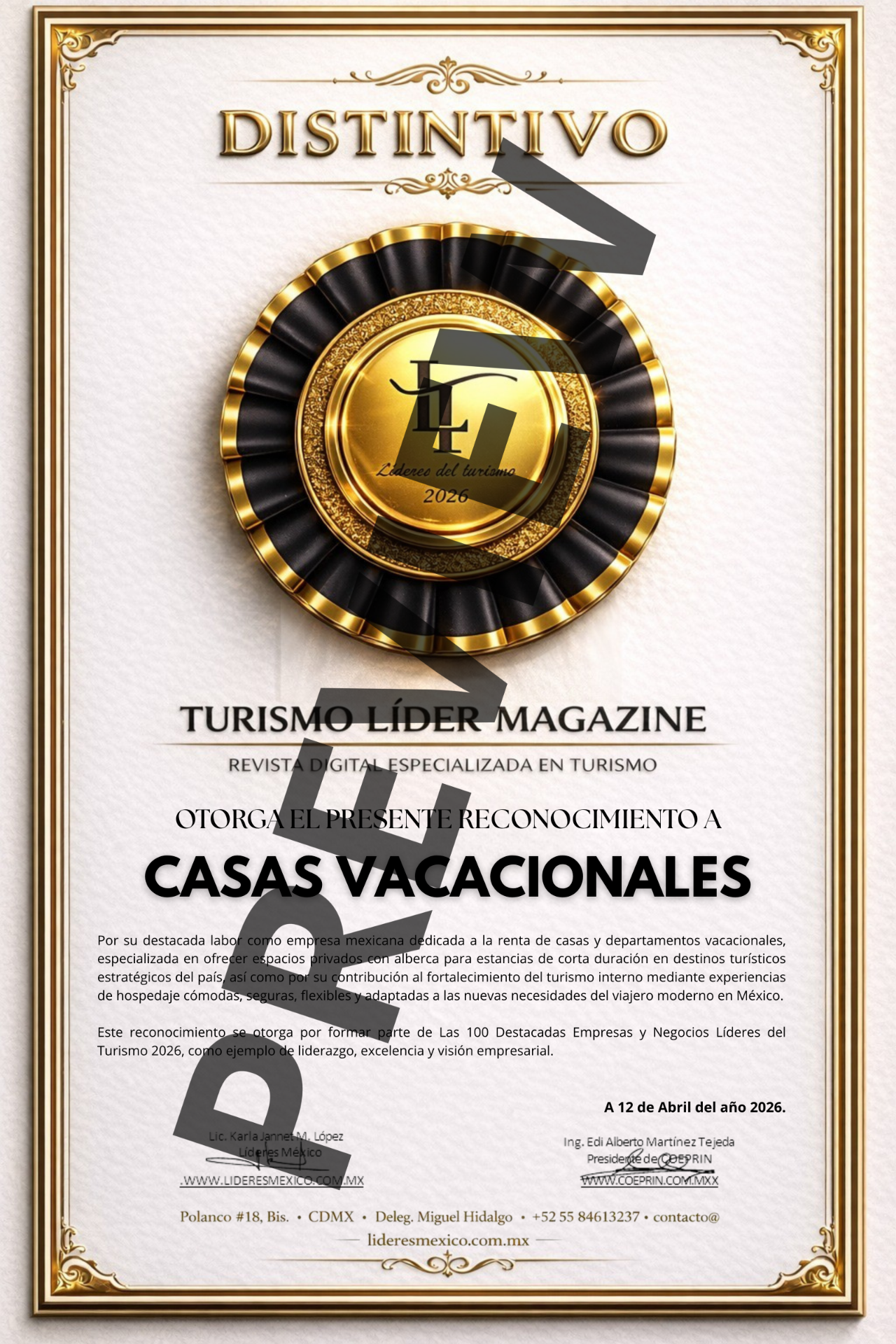 Reciba un cordial saludo y nuestras más sinceras felicitaciones por formar parte de las "100 EMPRESAS Y NEGOCIOS LÍDERES DEL TURISMO EN MÉXICO 2026".