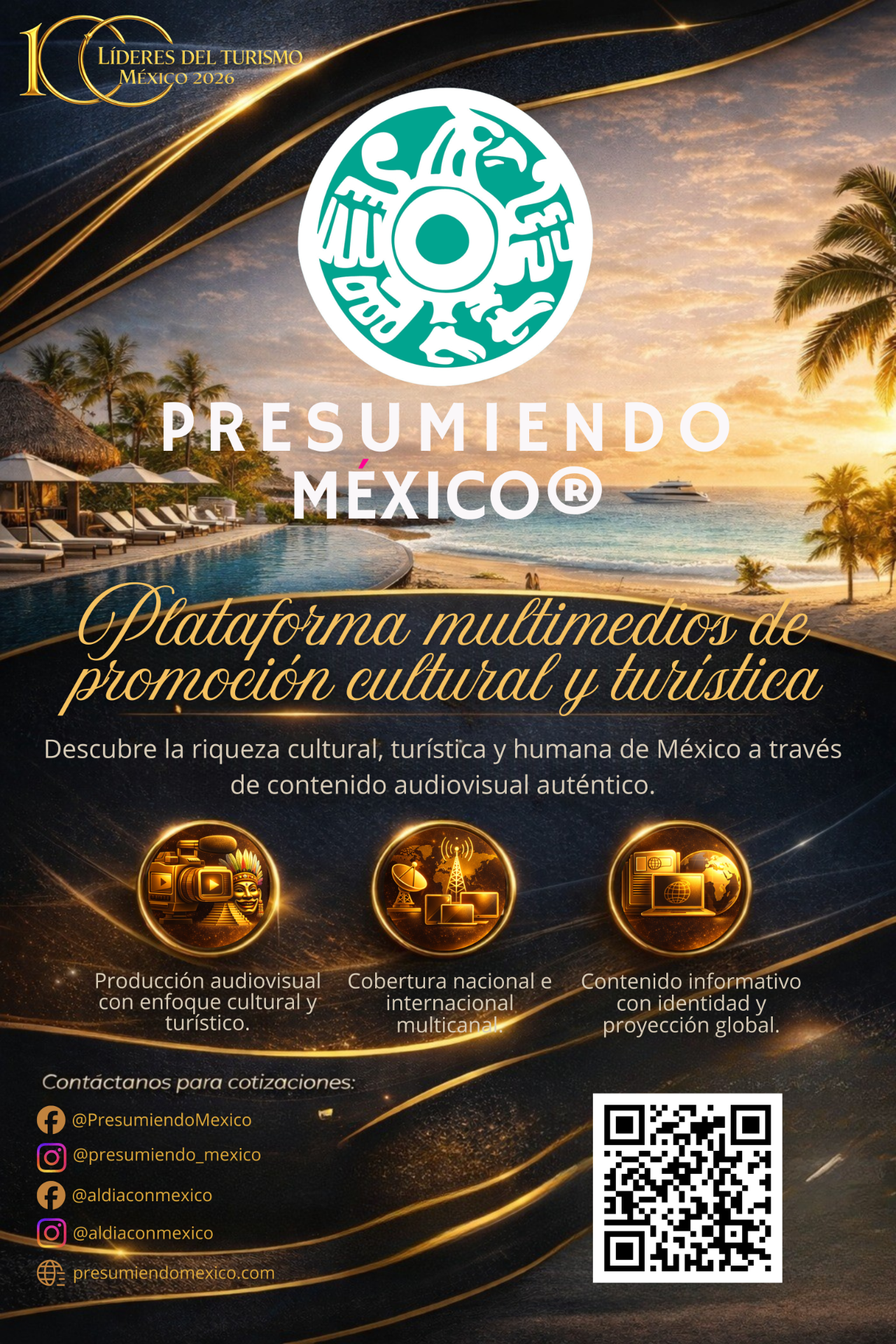Reciba un cordial saludo y nuestras más sinceras felicitaciones por formar parte de las "100 EMPRESAS Y NEGOCIOS LÍDERES DEL TURISMO EN MÉXICO 2026"