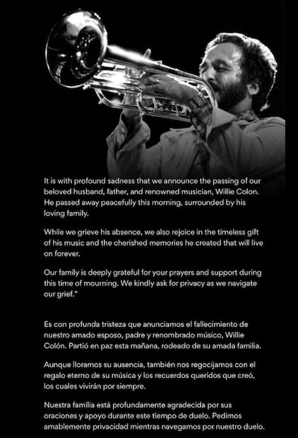 La música latina enfrenta uno de sus momentos más sensibles tras confirmarse el fallecimiento de Willie Colón, uno de los nombres más influyentes en la historia de la salsa. Su partida marca el fin de una era para el género que ayudó a consolidar a nivel internacional y deja un legado artístico que trasciende generaciones. 🎺