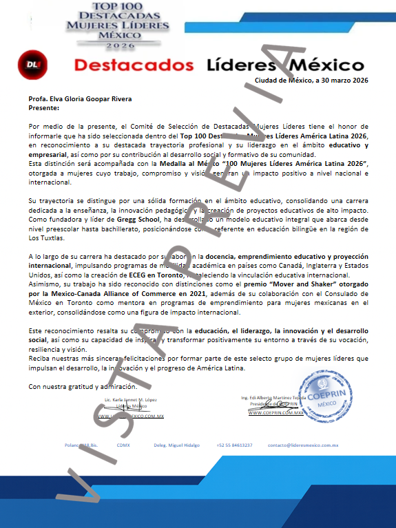 Reciba un cordial saludo y nuestras más sinceras felicitaciones, ya que nuestro comité ha votado a favor de su solicitud para que forme parte de nuestros líderes que el próximo mes de marzo estará recibiendo la "MEDALLA AL MÉRITO MUJER LÍDER 2026", "EL GALARDÓN AL MÉRITO 100 DESTACADAS MUJERES LÍDERES AMÉRICA LATINA 2026"