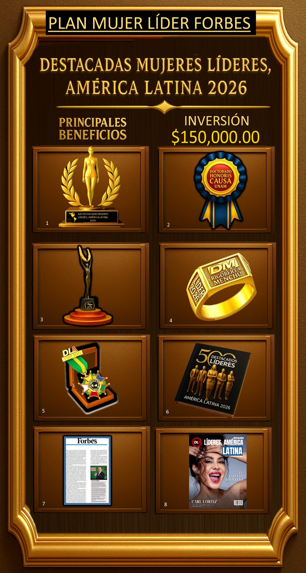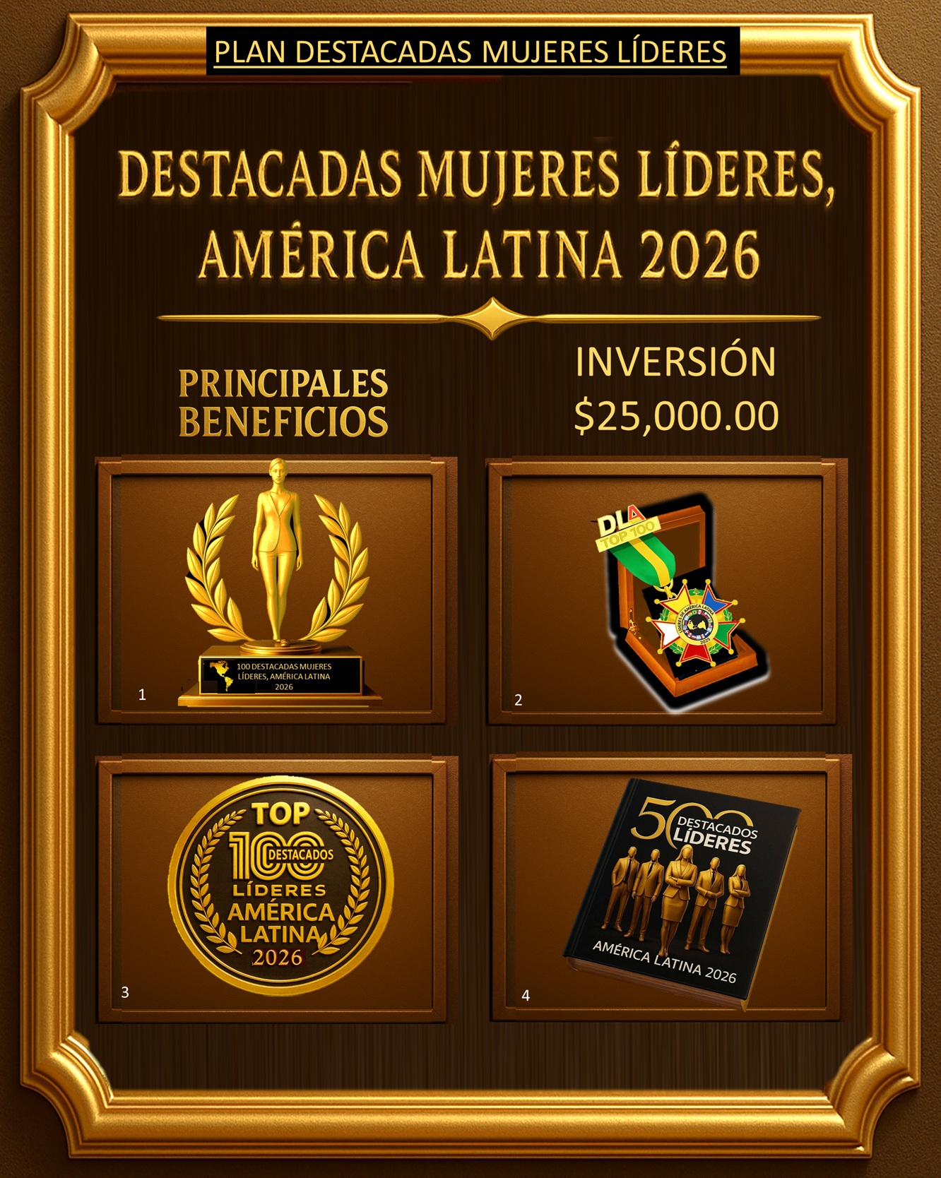 Reciba un cordial saludo y nuestras más sinceras felicitaciones, ya que nuestro comité ha votado en favor de su solicitud para que forme parte de nuestros líderes que el próximo mes de marzo estará recibiendo; "MEDALLA AL MERITO MUJER LÍDER 2026 Y EL GALARDÓN AL MÉRITO 100 DESTACADAS MUJERES LIDERES AMÉRICA LATINA 2026"