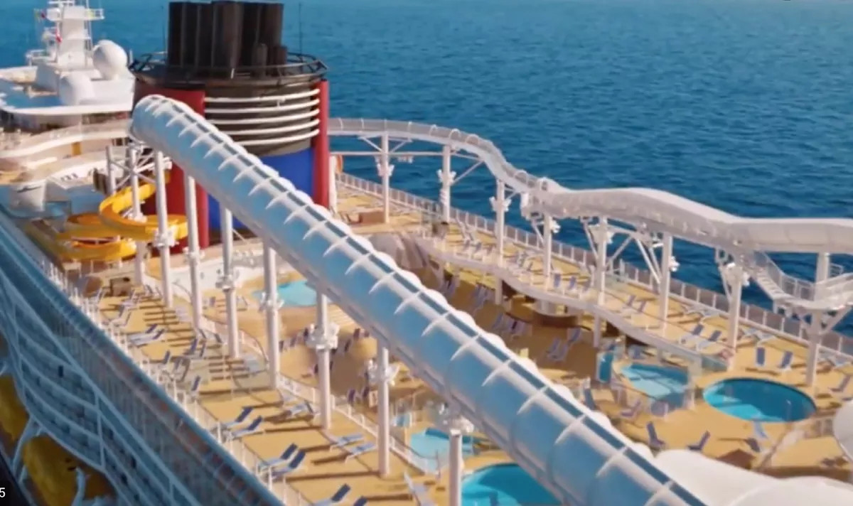 Inaugurado en 2011 y construido en Alemania por Meyer Werft, el Disney Dream puede albergar a 4,000 pasajeros y 1,458 tripulantes distribuidos en 14 cubiertas.