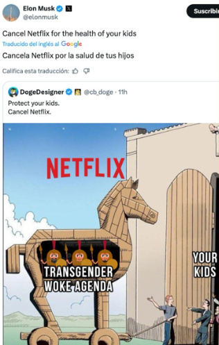 "Cancelen Netflix por la salud de sus hijos", publicó Musk. ⚠️