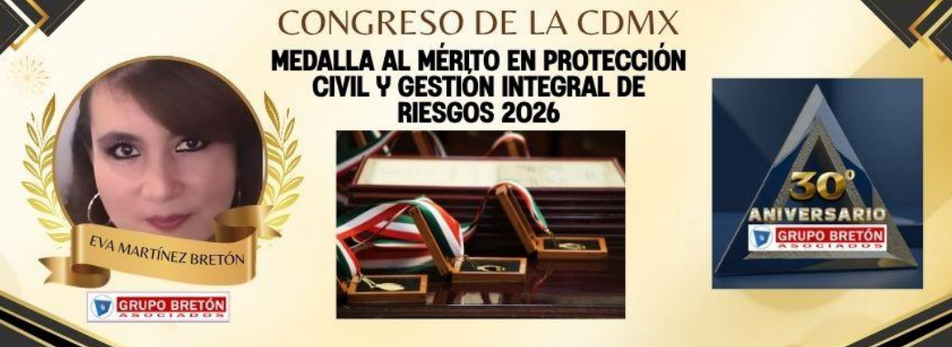 En un reconocimiento a la excelencia técnica y al compromiso con la seguridad de la ciudadanía, el Congreso de la Ciudad de México entregó la "Medalla al Mérito en Protección Civil y Gestión Integral de Riesgos 2026" a la Mtra. Evangelina (Eva) Martínez Bretón, destacando su trayectoria y aportación en la construcción de una cultura sólida de prevención.