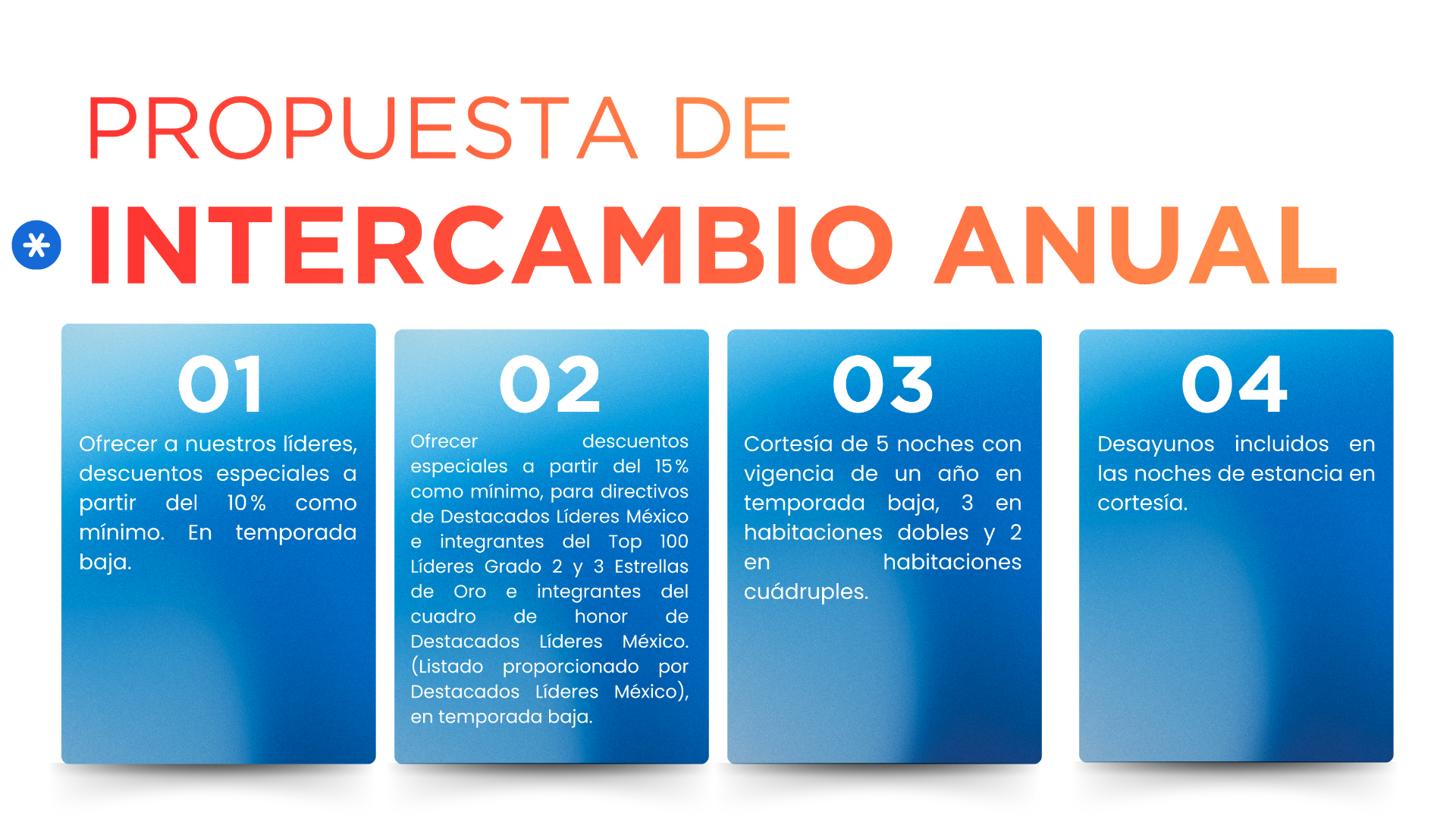 Nota: Esta propuesta no es definitiva y el hotel participante puede realizar una contrapropuesta, la cual deberá ser similar a los requerimientos de intercambio.