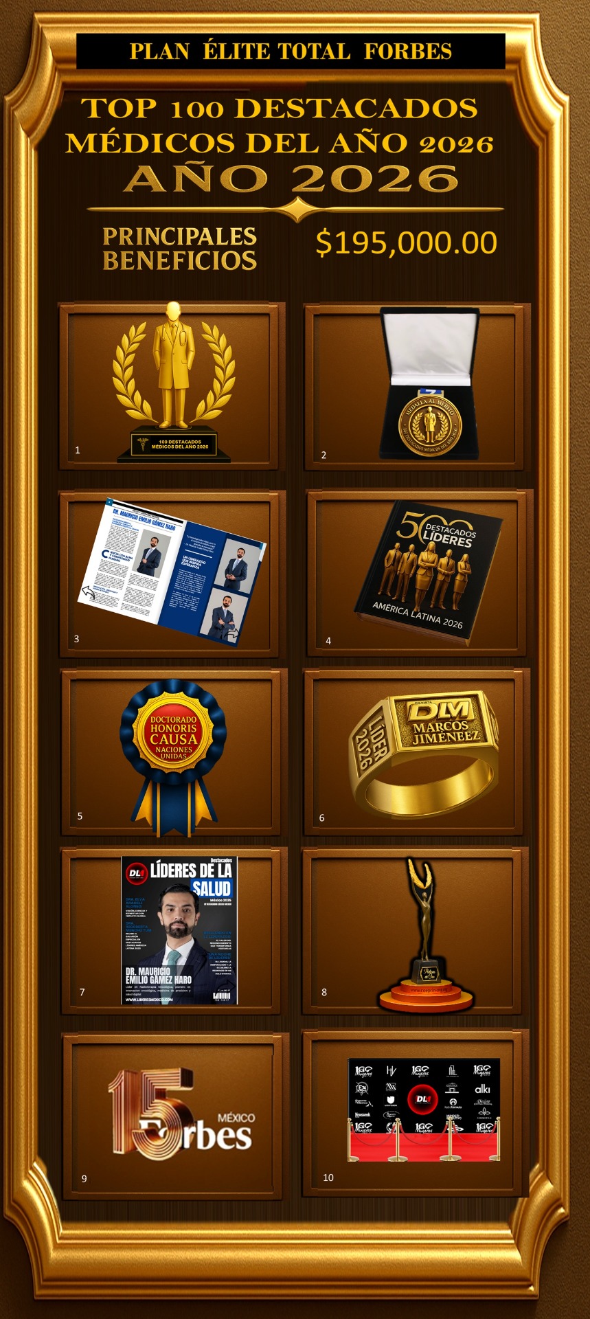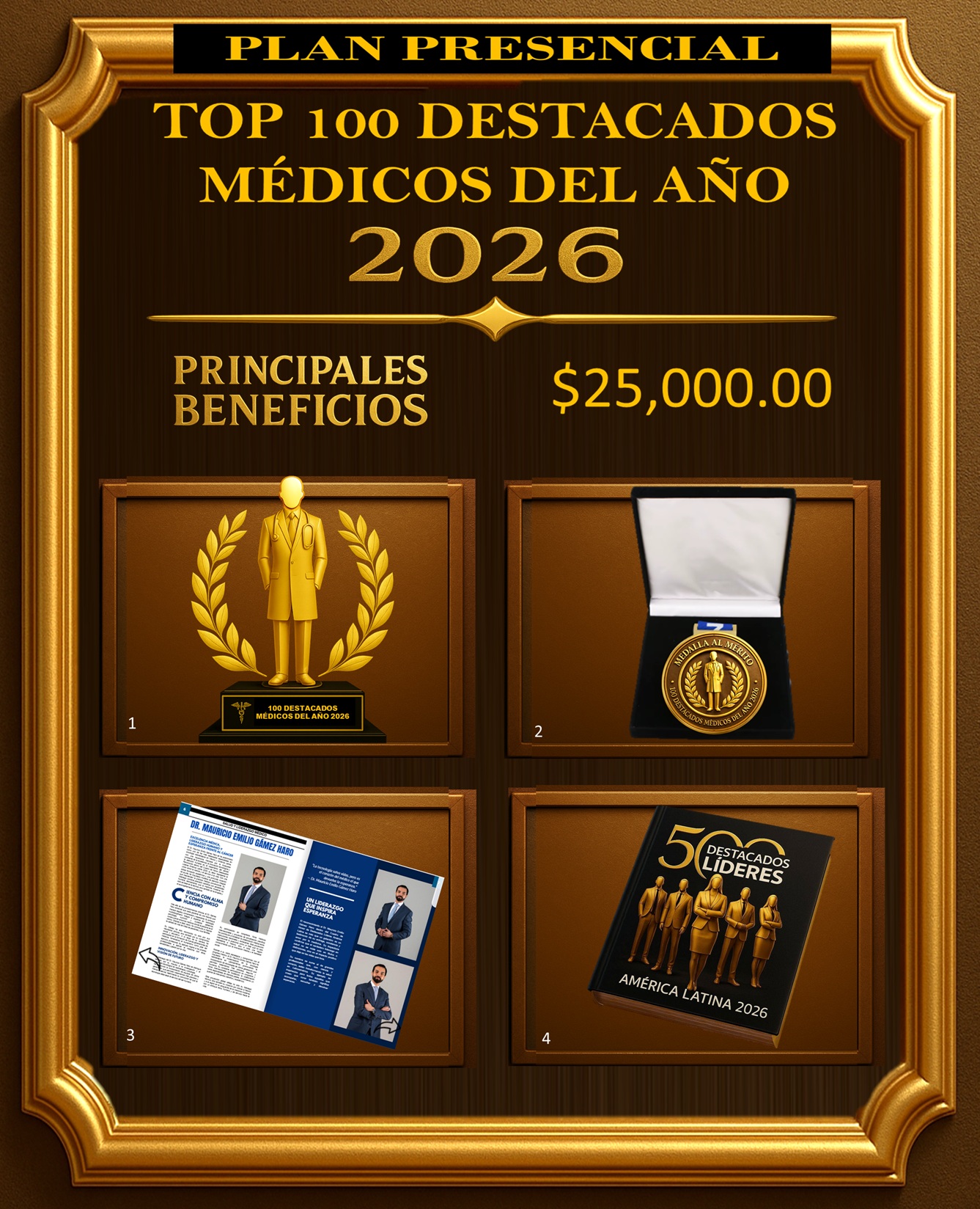 - 1) Galardón al Top 100 Destacados Médicos del año 2026, entrega en el magno evento Destacados Líderes México 2026 el próximo 28 de octubre del 2026 en Ciudad de México.