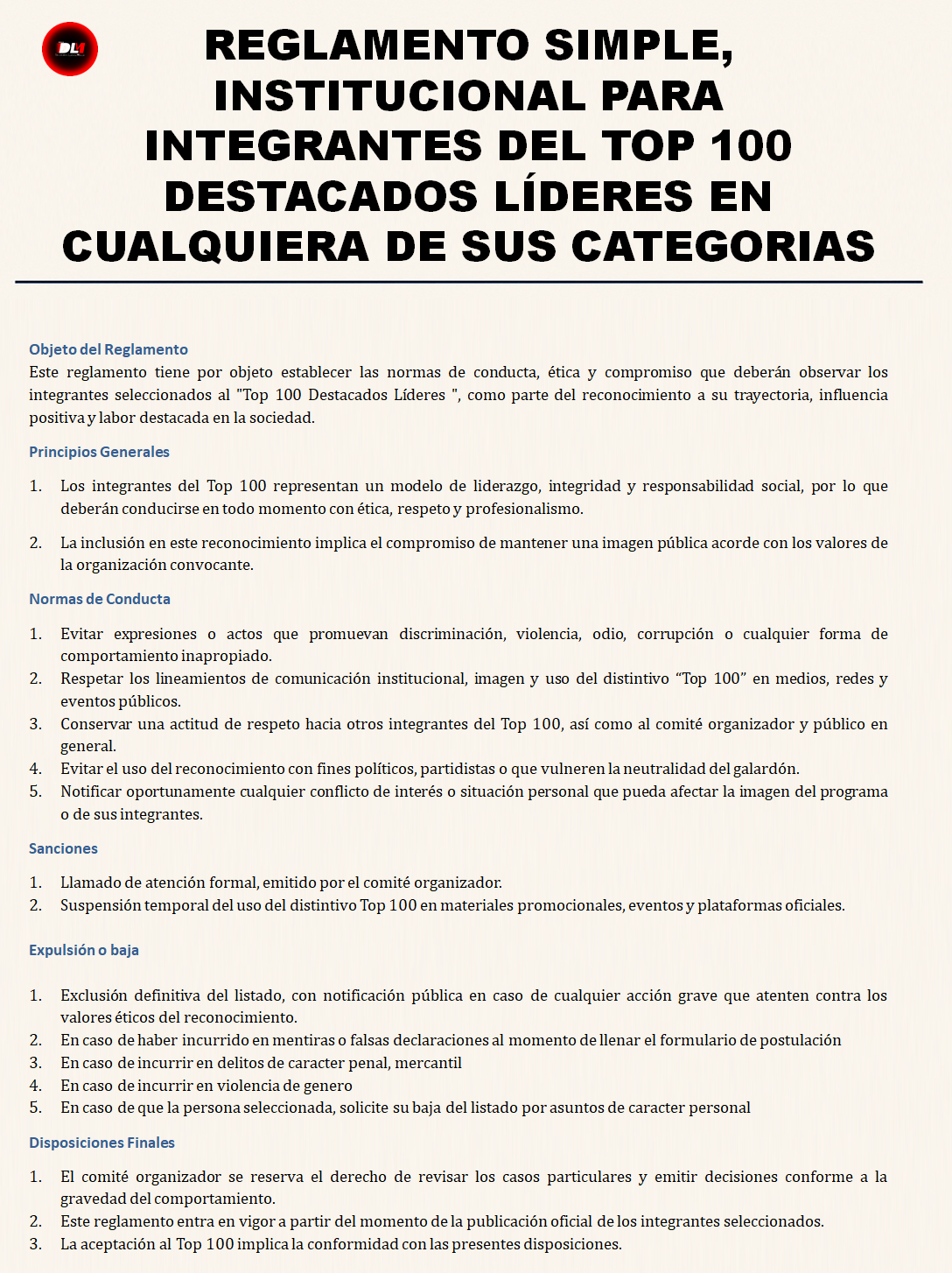 - Video-Conferencia de prensa nacional para presentación del Top 100, el próximo 28 de mayo de 2026 a las 11:00 Hrs. Vea aquí el ejemplo: https://www.lideresmexico.com.mx/destacados-lideres-mexico-presenta-el-top-100-destacados-lideres-de-la-salud/