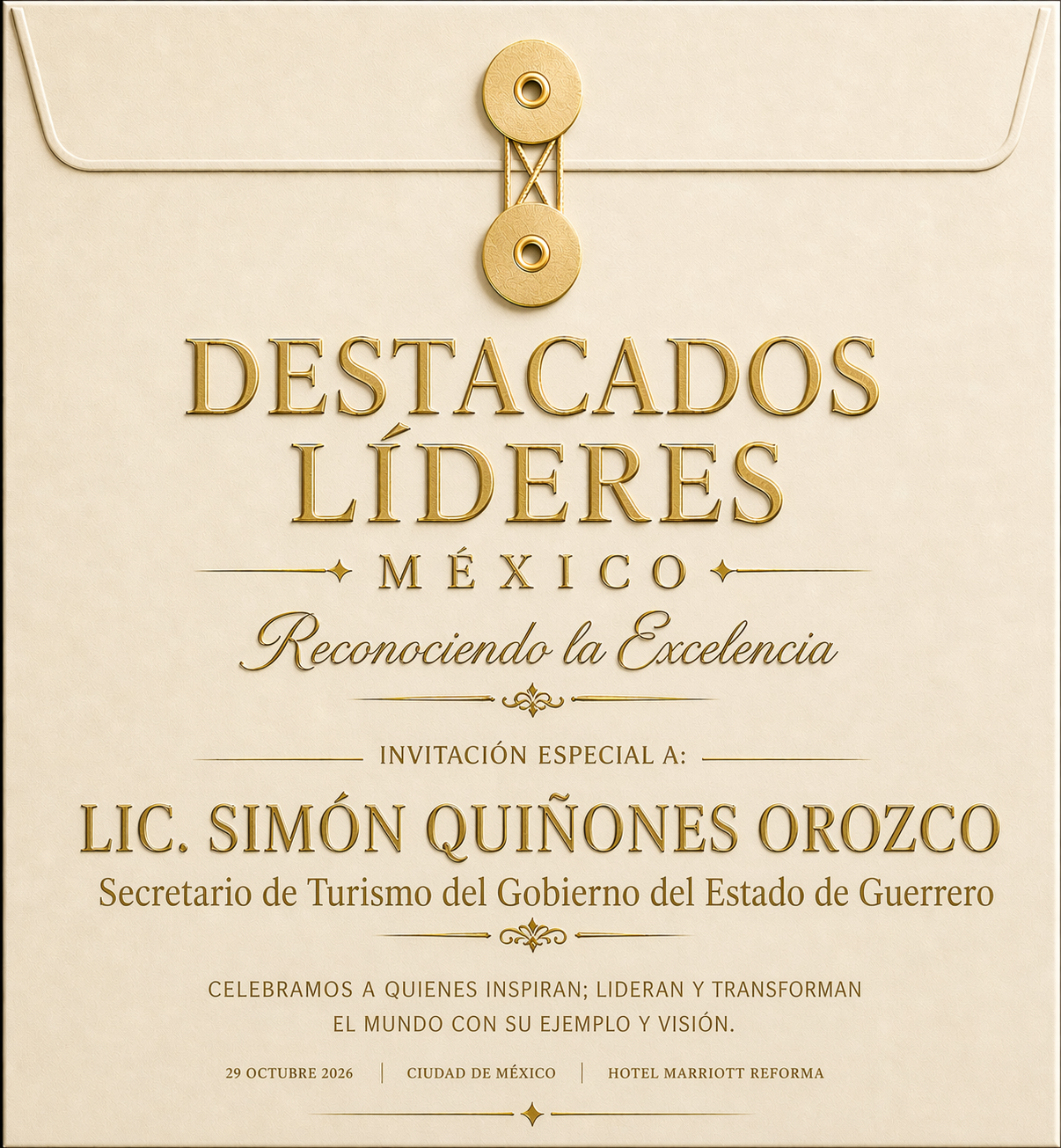 Este magno evento se llevará a cabo el próximo 29 de octubre de 2026, en la Ciudad de México, a las 17:00 horas, reuniendo a destacadas personalidades, líderes empresariales, representantes institucionales y figuras influyentes de diversos países de la región y será para nosotros un verdadero privilegio contar con su distinguida presencia en esta importante celebración.