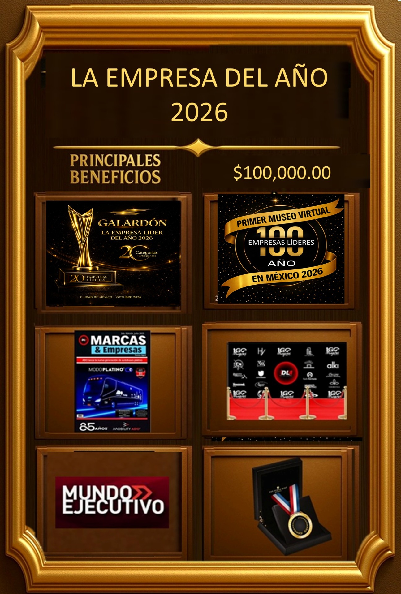 -CONDECORACIÓN AL MÉRITO TOP 100 MARCAS DESTACADAS DEL AÑO 2026, SE ENVÍA A DOMICILIO.