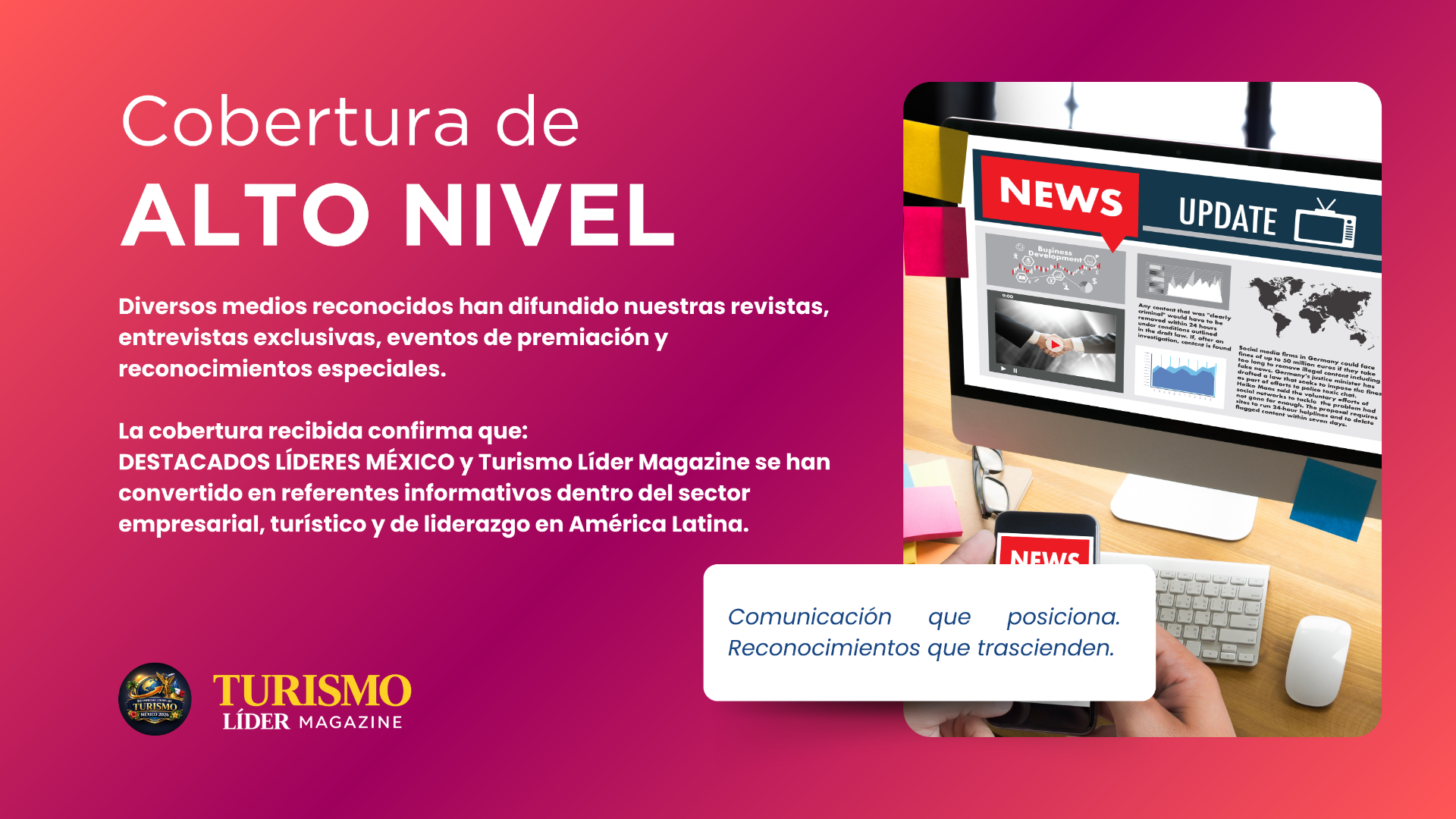 Nuestros comunicados de prensa, entrevistas y premiaciones reciben cobertura en medios digitales, plataformas informativas, revistas especializadas, televisión digital y portales de alcance nacional e internacional.