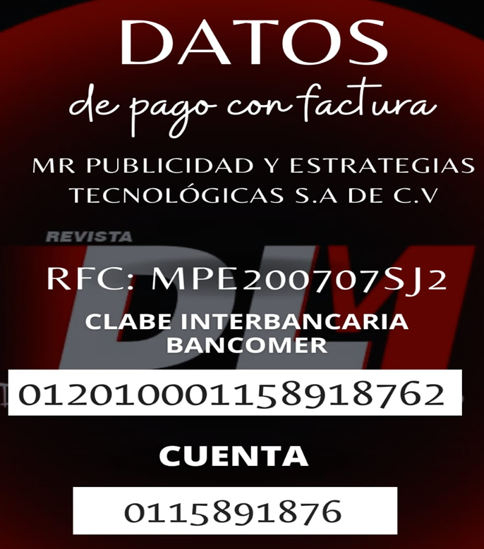 Para el reservado de su mesa le compartimos los siguientes datos bancarios, recordándole que el concepto en la factura saldrá como gastos de publicidad y es más I.V.A en caso de requerirla.
