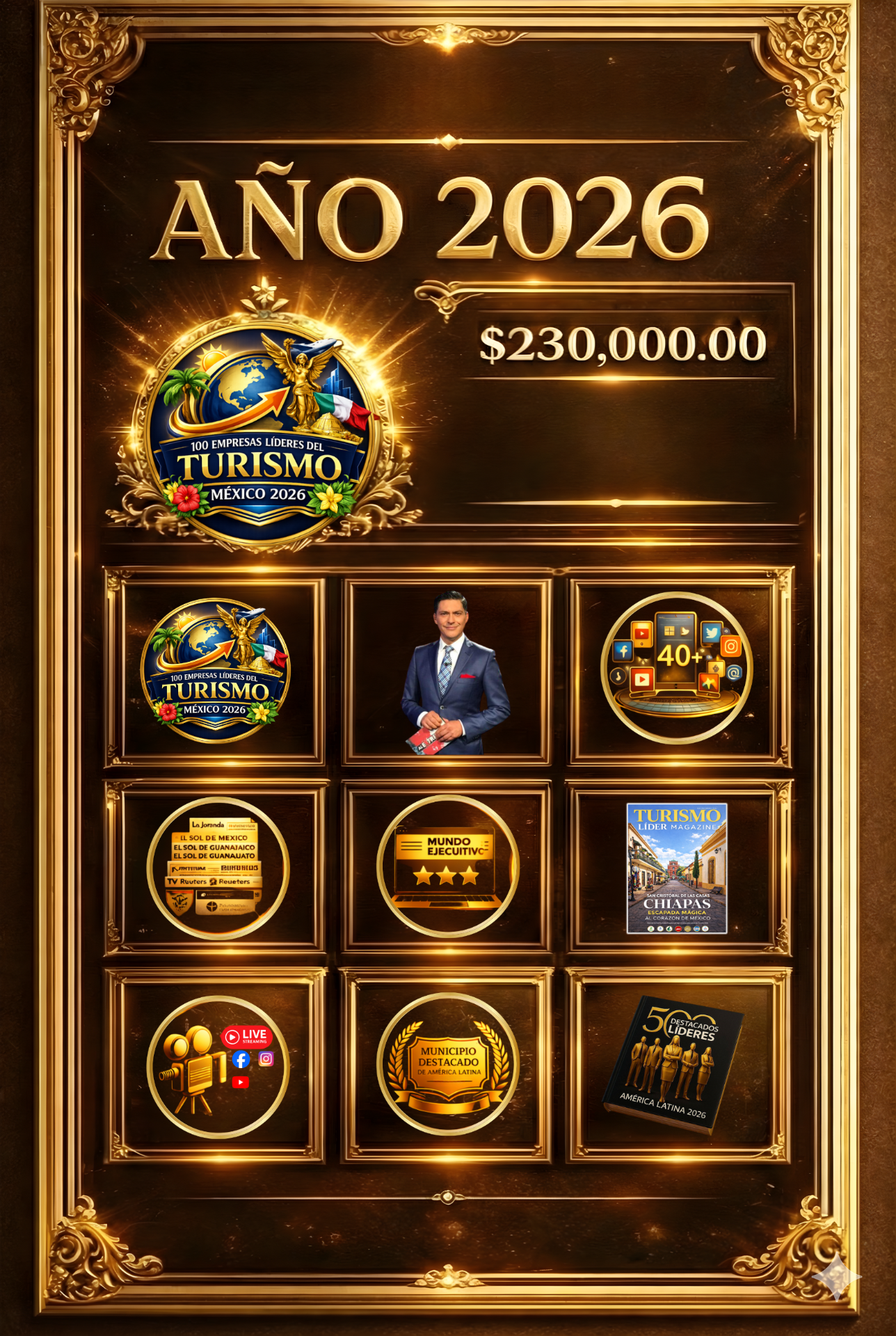 Este paquete no solo representa un reconocimiento, sino una plataforma integral de posicionamiento, reputación y proyección internacional, diseñada para consolidar su liderazgo dentro del sector turístico.