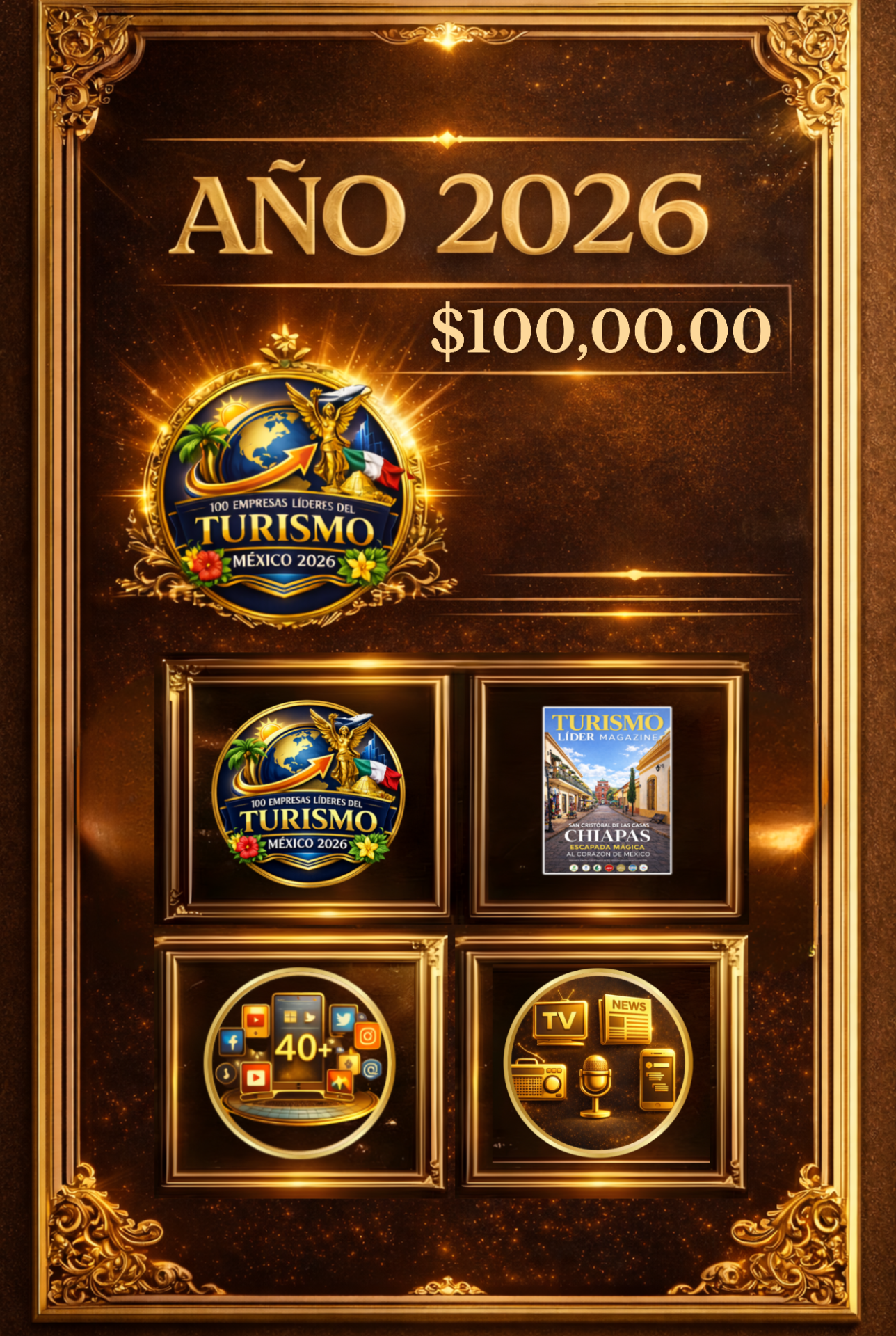 Una propuesta estratégica diseñada para brindar alto impacto mediático, posicionamiento de marca y proyección nacional, dentro del marco del Top 100 Empresas Líderes del Turismo 2026.