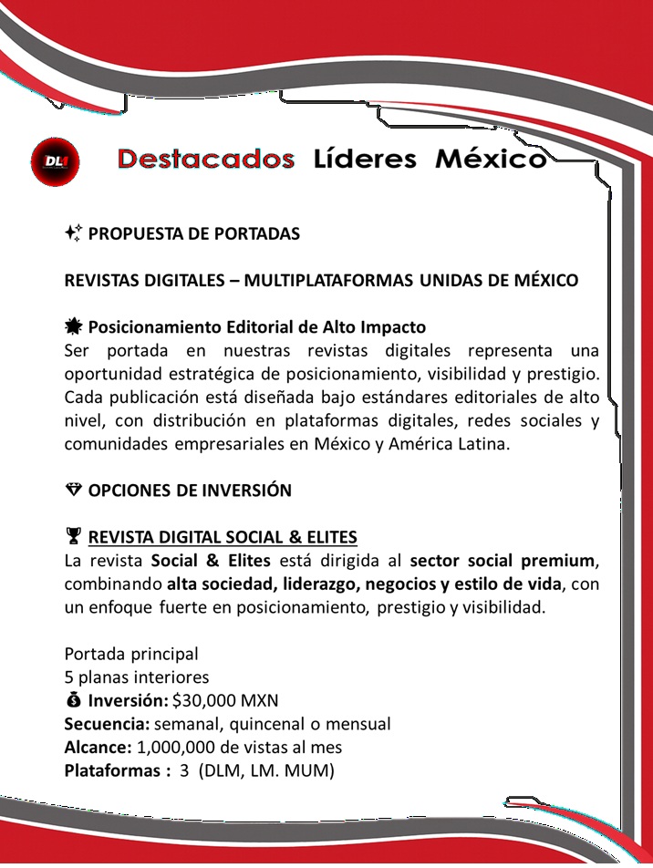 Las revistas digitales – Multiplataformas Unidas de México son publicaciones profesionales diseñadas para proyectar marcas, líderes y proyectos en los entornos empresariales y profesionales más exigentes de México y América Latina. Con un enfoque editorial de alto impacto, combinan análisis riguroso, contenidos estratégicos y narrativas inspiradoras que conectan con tomadores de decisión, directivos y emprendedores.