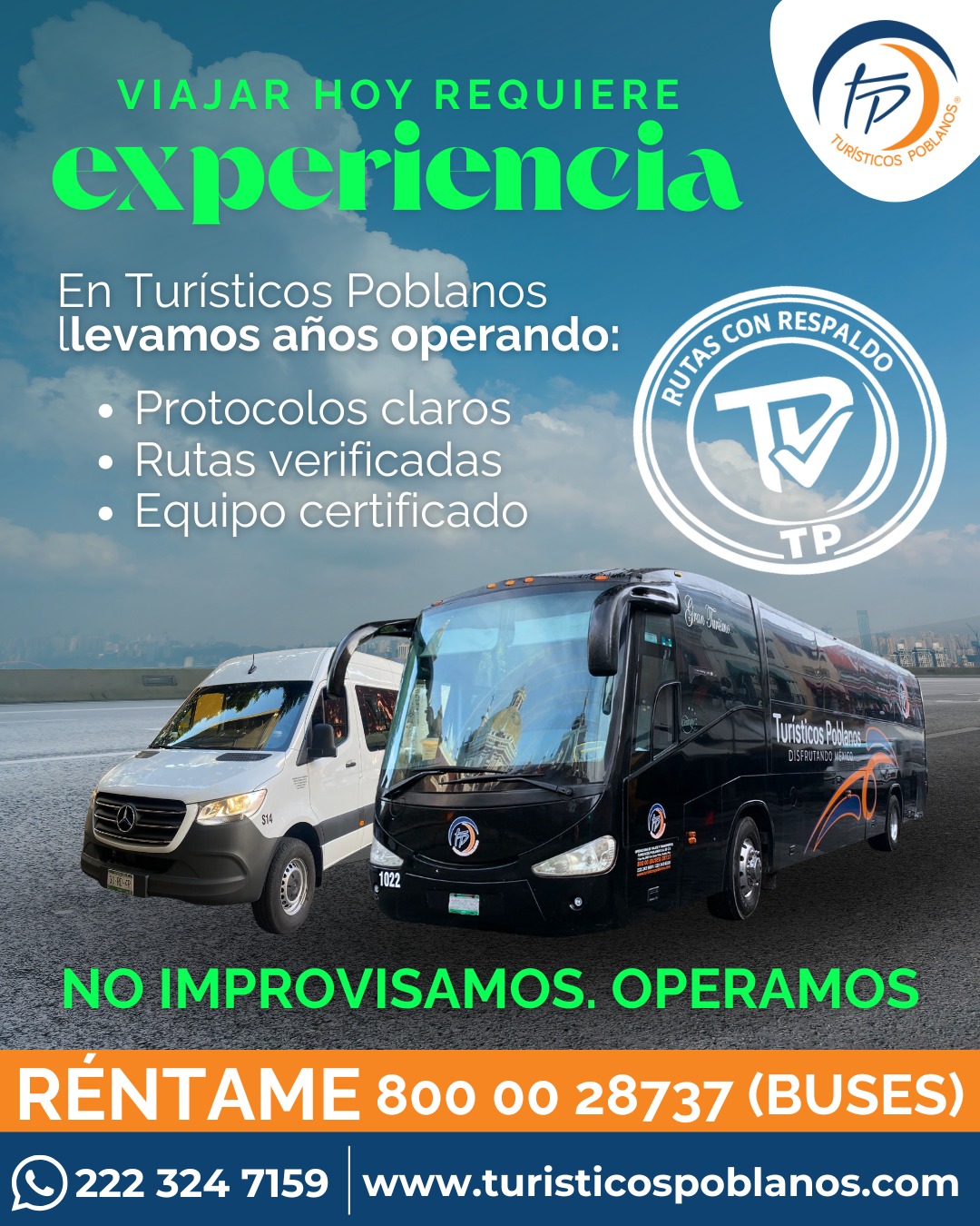 Turísticos Poblanos representa compromiso, experiencia y liderazgo en el transporte y operación turística del país.