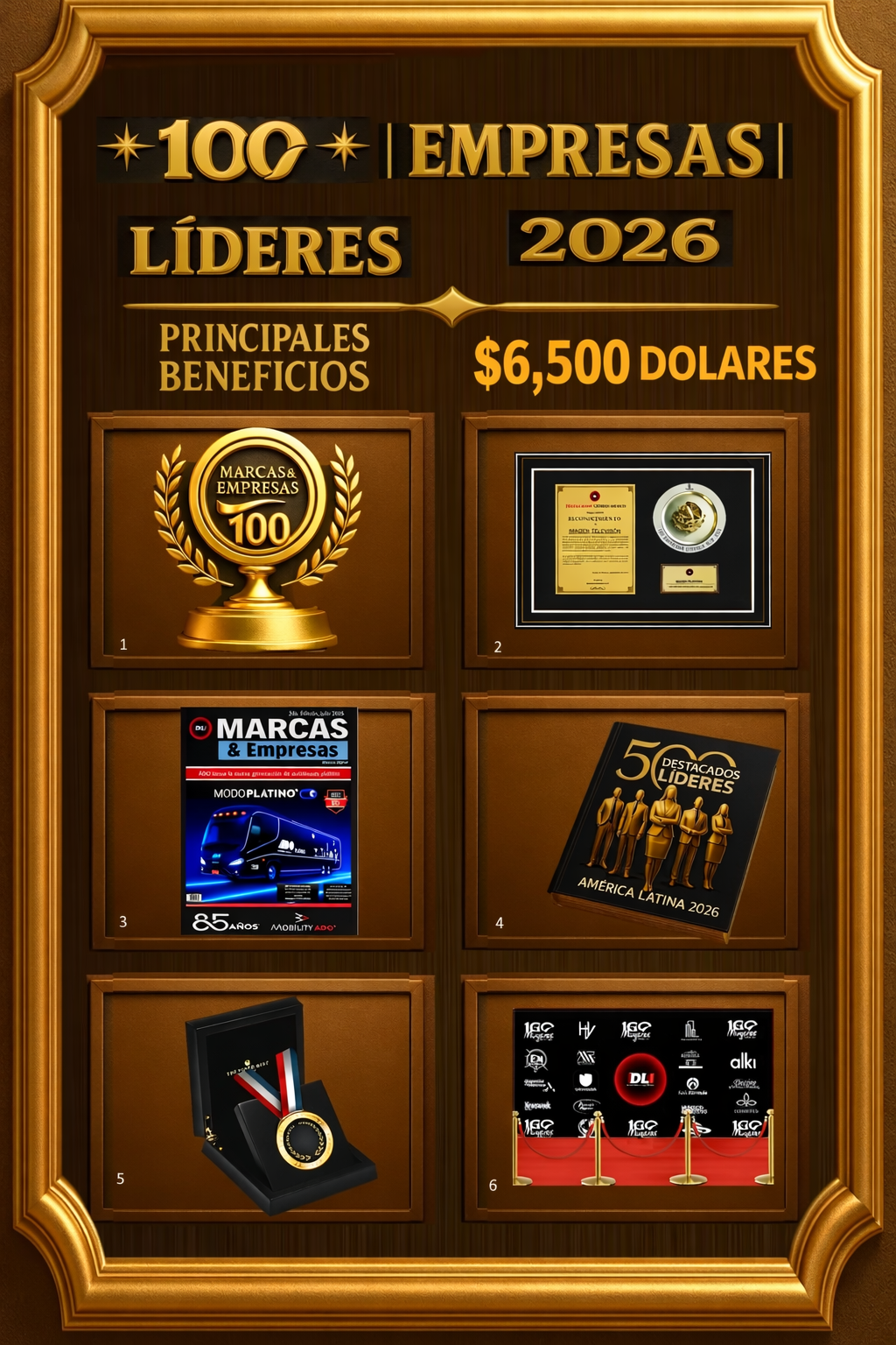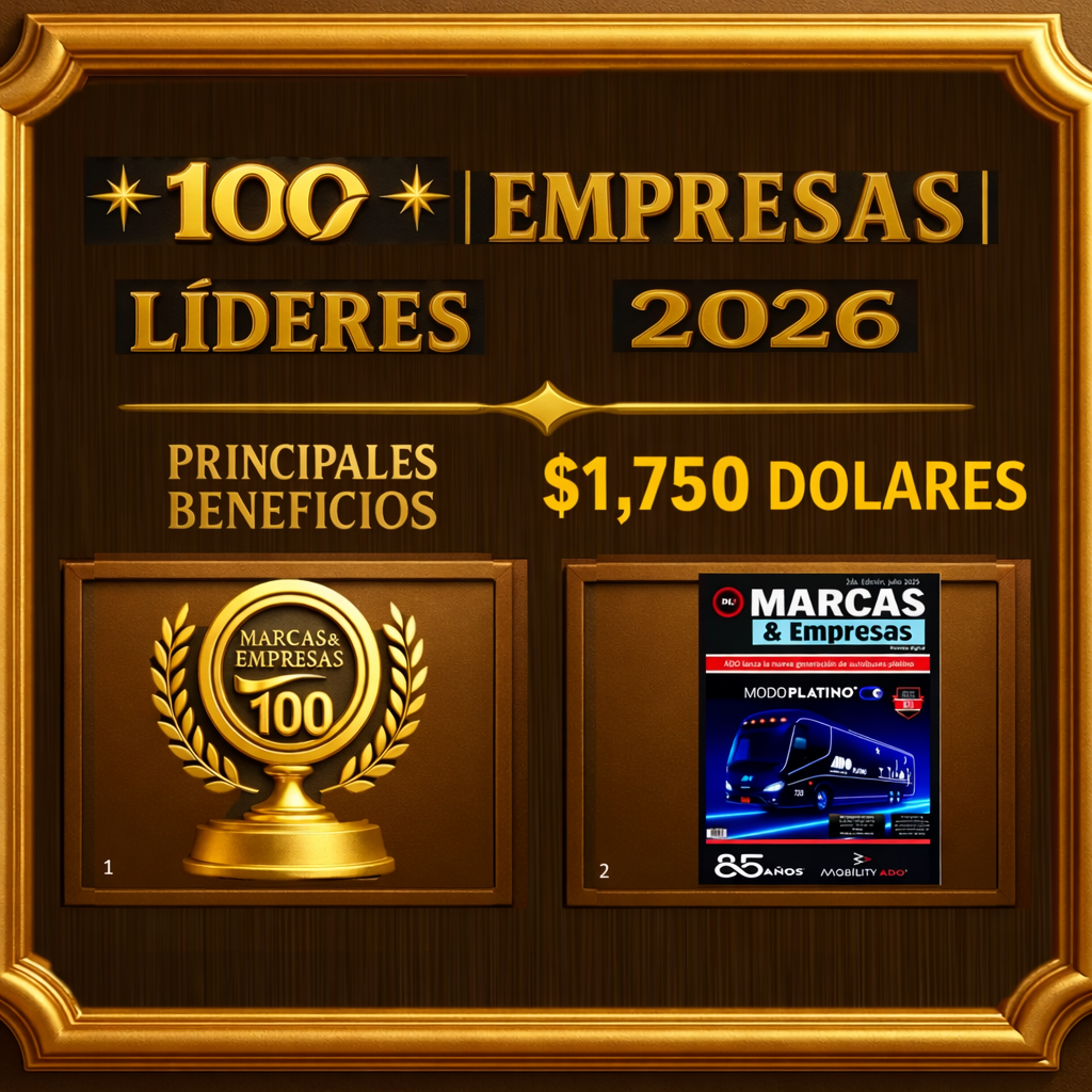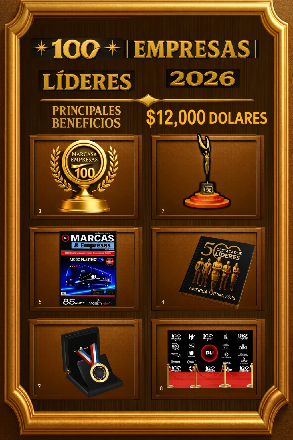 PLAN LÍDER TOTAL: LISTADO EN EL TOP 100 MARCAS DEL AÑO 2026, MONTO DE INVERSIÓN 12,000 DOLARES (OPCIÓN DE HASTA 6 PAGOS, ANTICIPO DEL 30%)